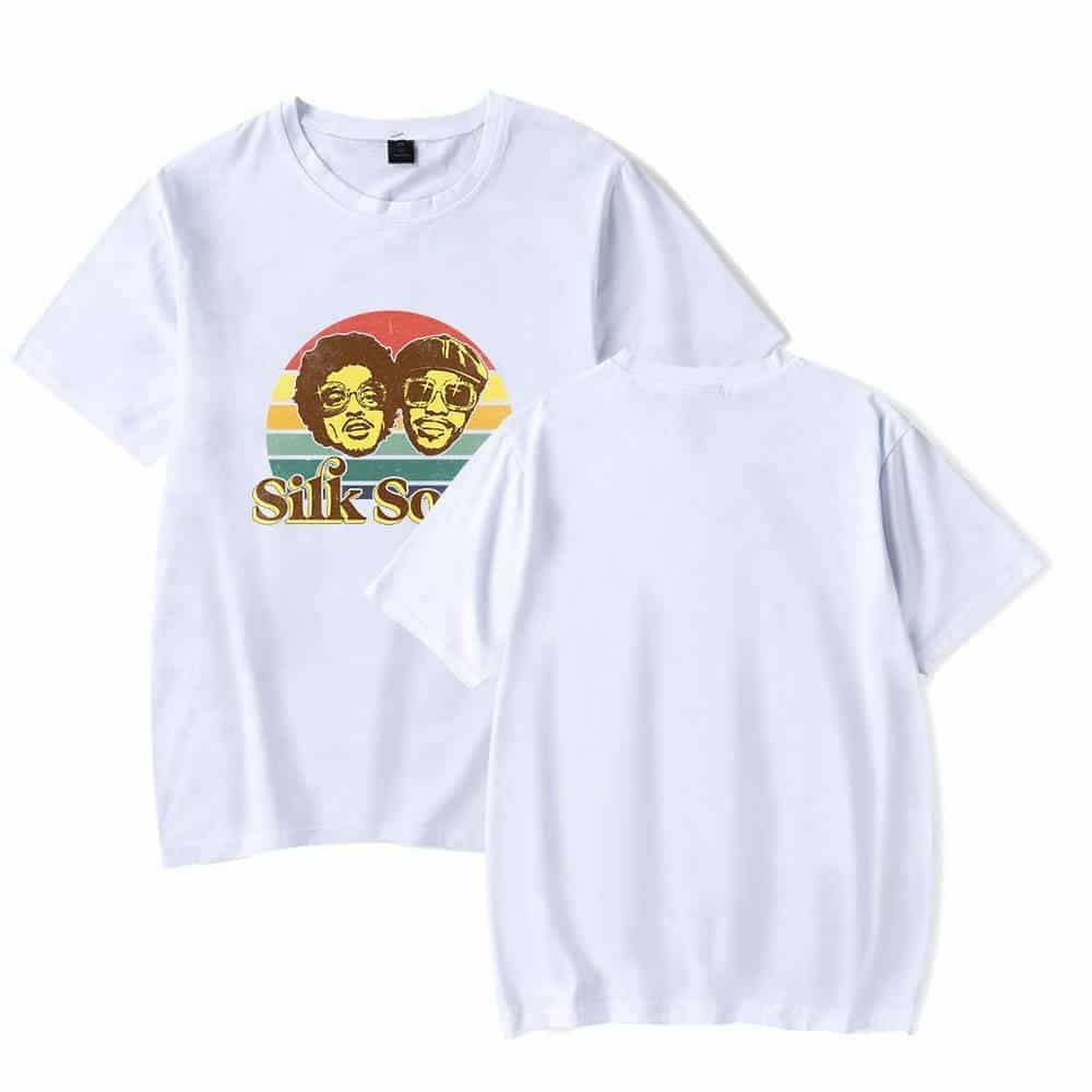 Mars is accompanied by his band, the Hooligans, who play a variety of instruments, such as electric guitar, bass, piano, keyboards, drums, and horns, and also serve as backup singers and disco dancers. In 2021, he collaborated with Anderson Paak, as the American musical superduo Silk Sonic. Fans all over the world love Bruno Mars merch.